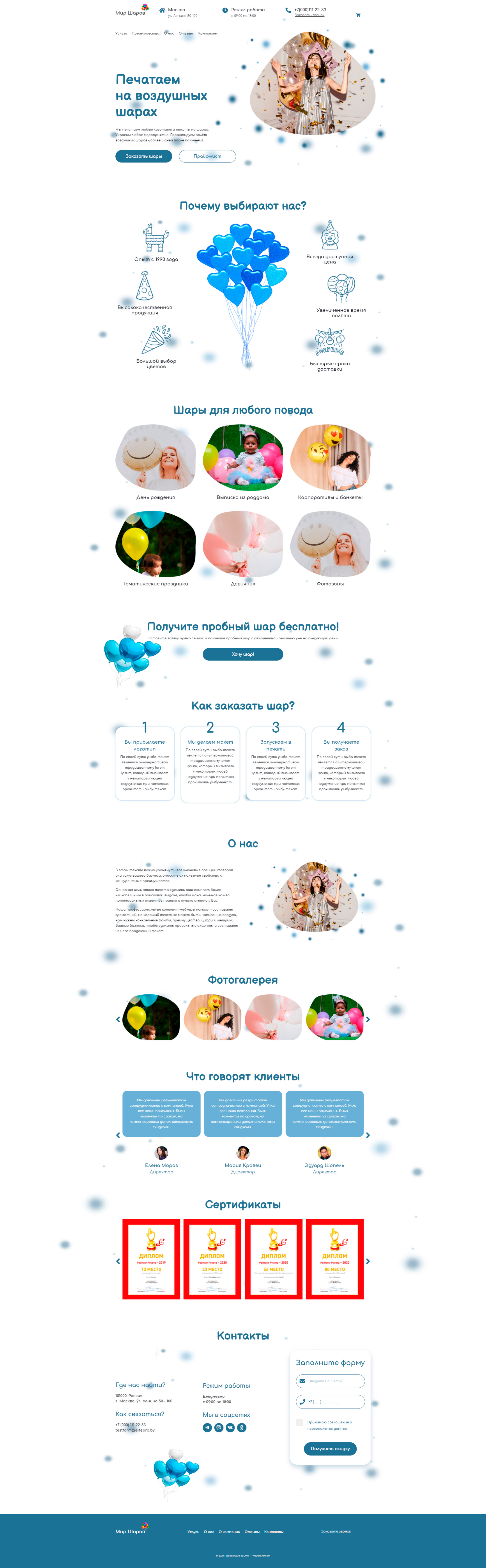 Закажите готовый продающий сайт лендинг #1826202 в Нижнем Новгороде за 1-3 дня «под ключ»: свёрстан, отрисован и готов к рекламе. Тематика шаблона «Печать на воздушных шарах».