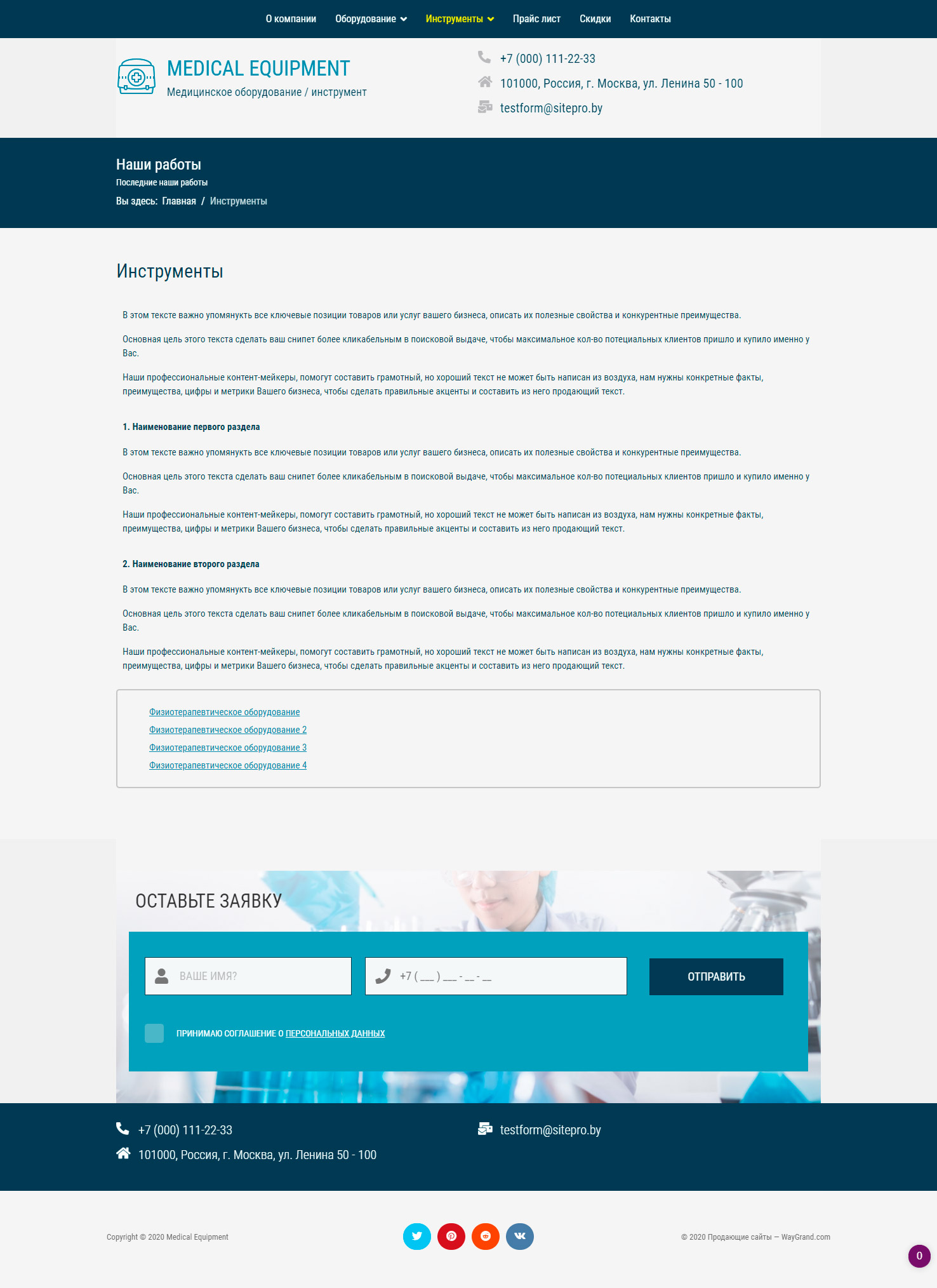 Закажите готовый продающий сайт визитка #1029301 в Нижнем Новгороде за 5-7 дня «под ключ»: свёрстан, отрисован и готов к рекламе. Тематика шаблона «Медицинское оборудование / инструмент».