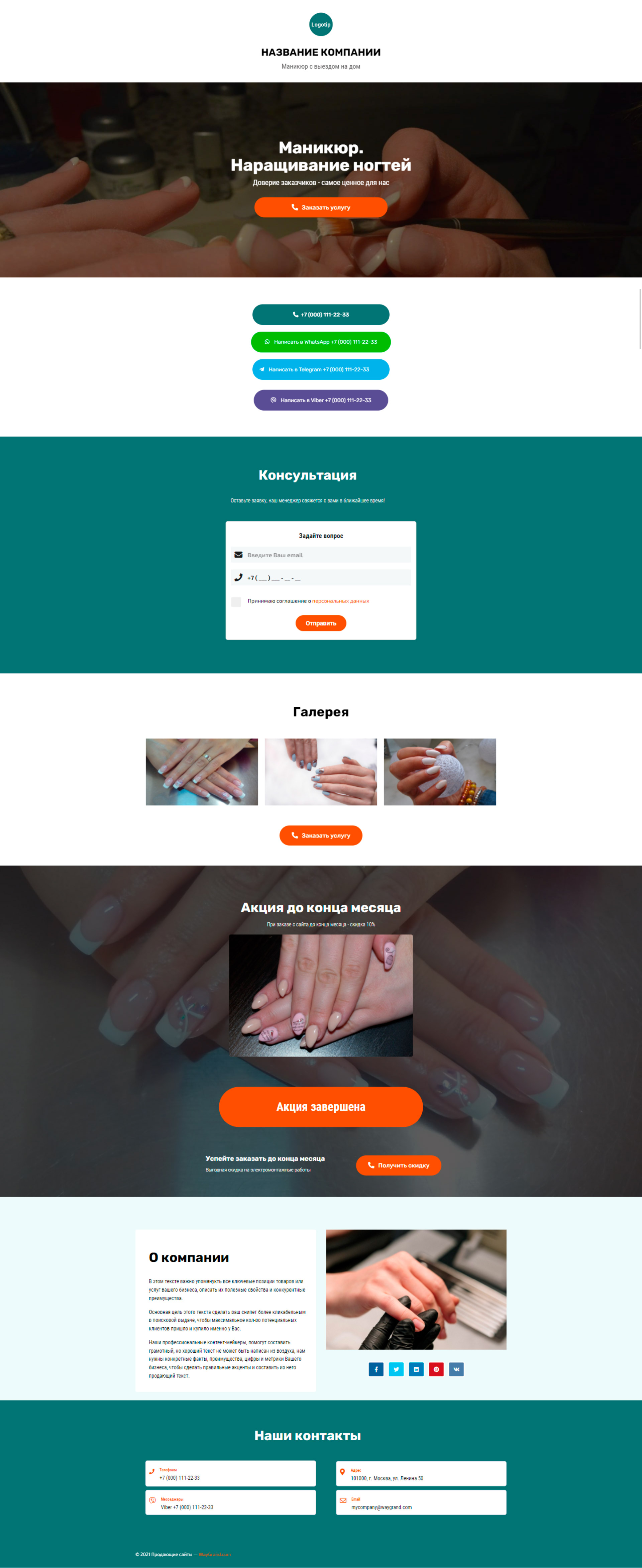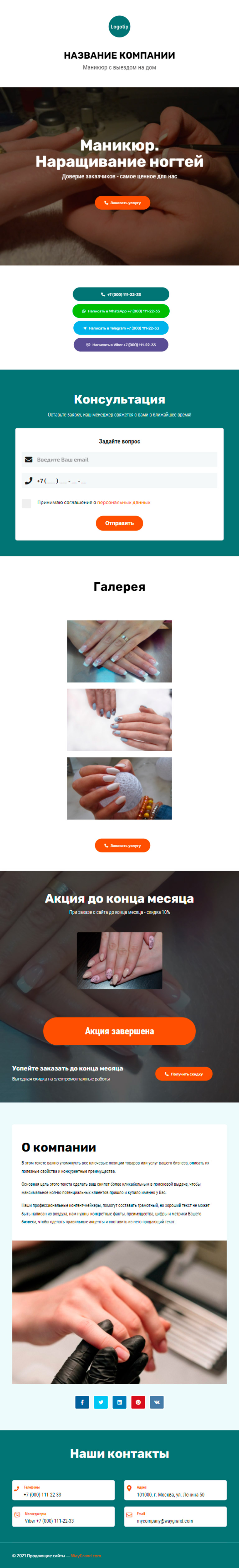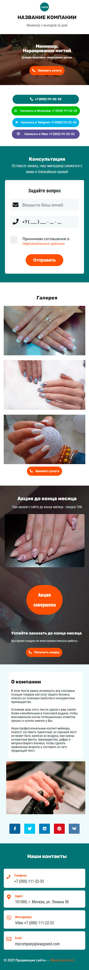 Закажите готовый продающий сайт визитка #1107101 в Нижнем Новгороде за 5-7 дня «под ключ»: свёрстан, отрисован и готов к рекламе. Тематика шаблона «Маникюр. Наращивание ногтей».