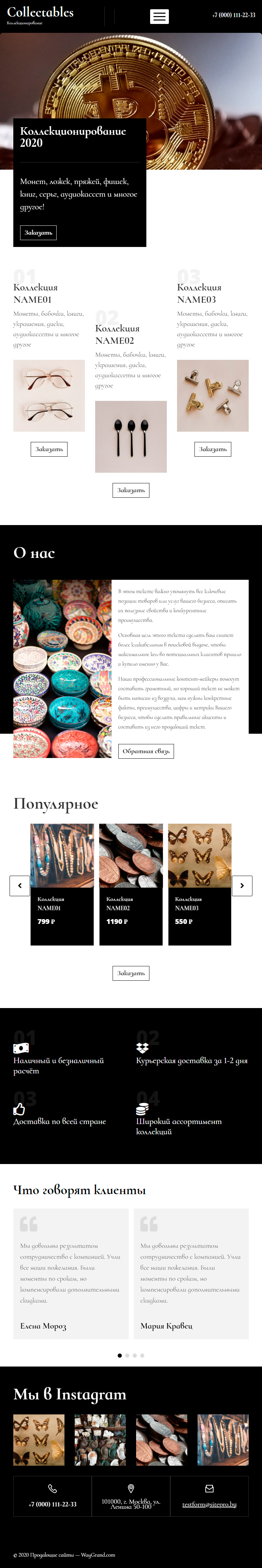 Закажите готовый продающий сайт лендинг #0801201 в Нижнем Новгороде за 1-3 дня «под ключ»: свёрстан, отрисован и готов к рекламе. Тематика шаблона «Коллекционирование».