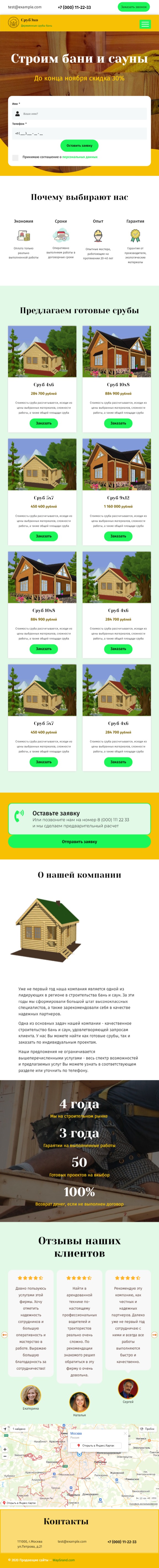 Закажите готовый продающий сайт лендинг #2172202 в Нижнем Новгороде за 1-3 дня «под ключ»: свёрстан, отрисован и готов к рекламе. Тематика шаблона «Строительство бань и саун».