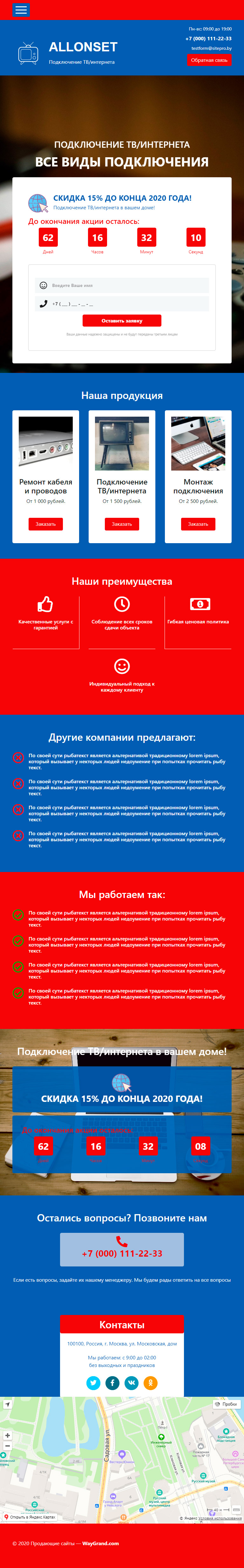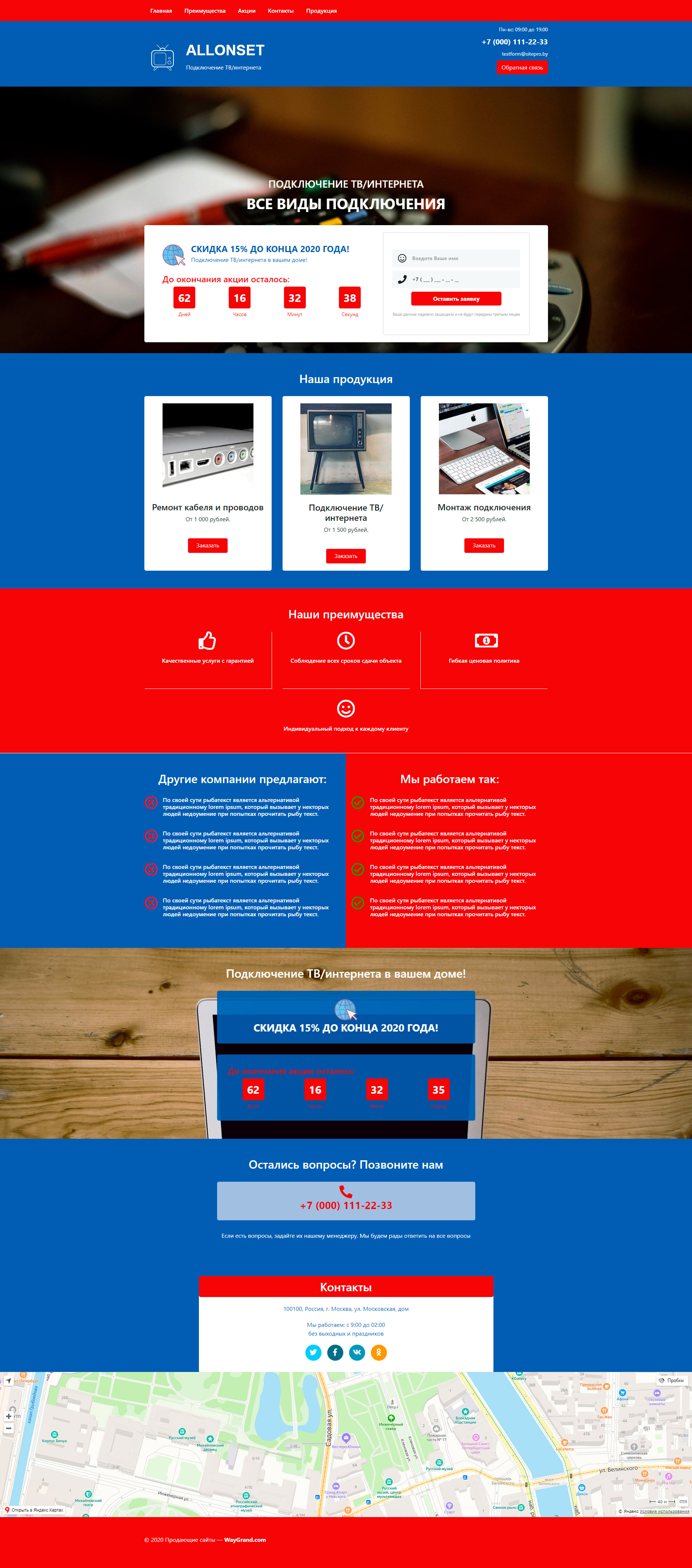 Закажите готовый продающий сайт лендинг #0718201 в Нижнем Новгороде за 1-3 дня «под ключ»: свёрстан, отрисован и готов к рекламе. Тематика шаблона «Подключение ТВ/интернета».