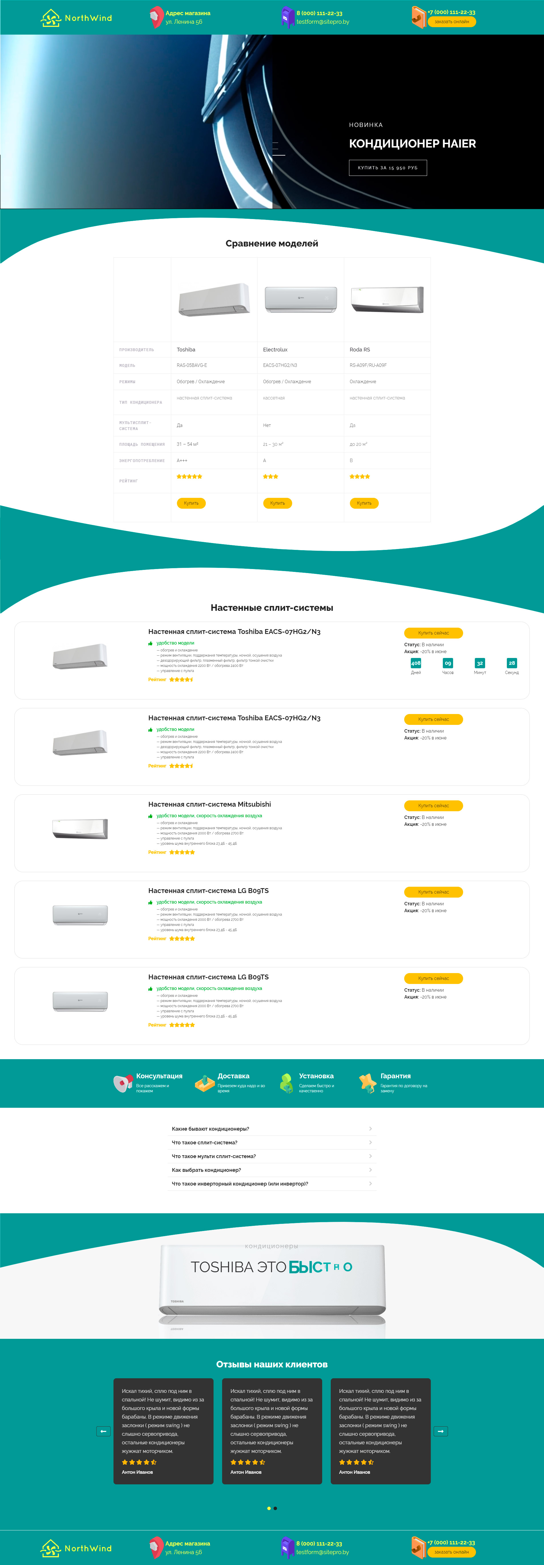 Закажите готовый продающий сайт лендинг #1323201 в Нижнем Новгороде за 1-3 дня «под ключ»: свёрстан, отрисован и готов к рекламе. Тематика шаблона «Кондиционеры».