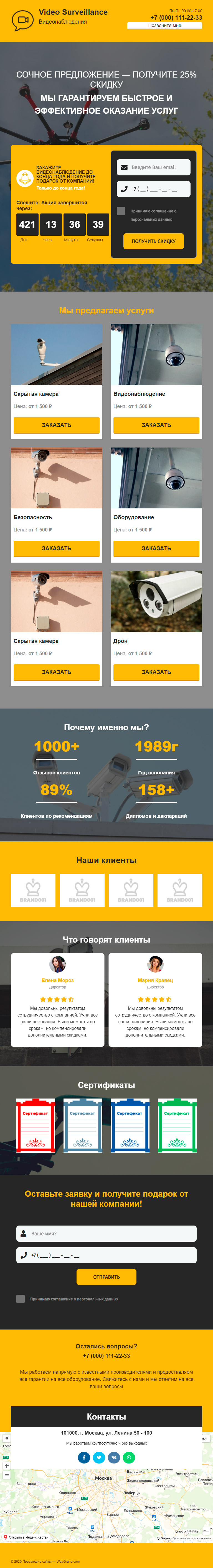 Закажите готовый продающий сайт лендинг #1609202 в Нижнем Новгороде за 1-3 дня «под ключ»: свёрстан, отрисован и готов к рекламе. Тематика шаблона «Видеонаблюдение».