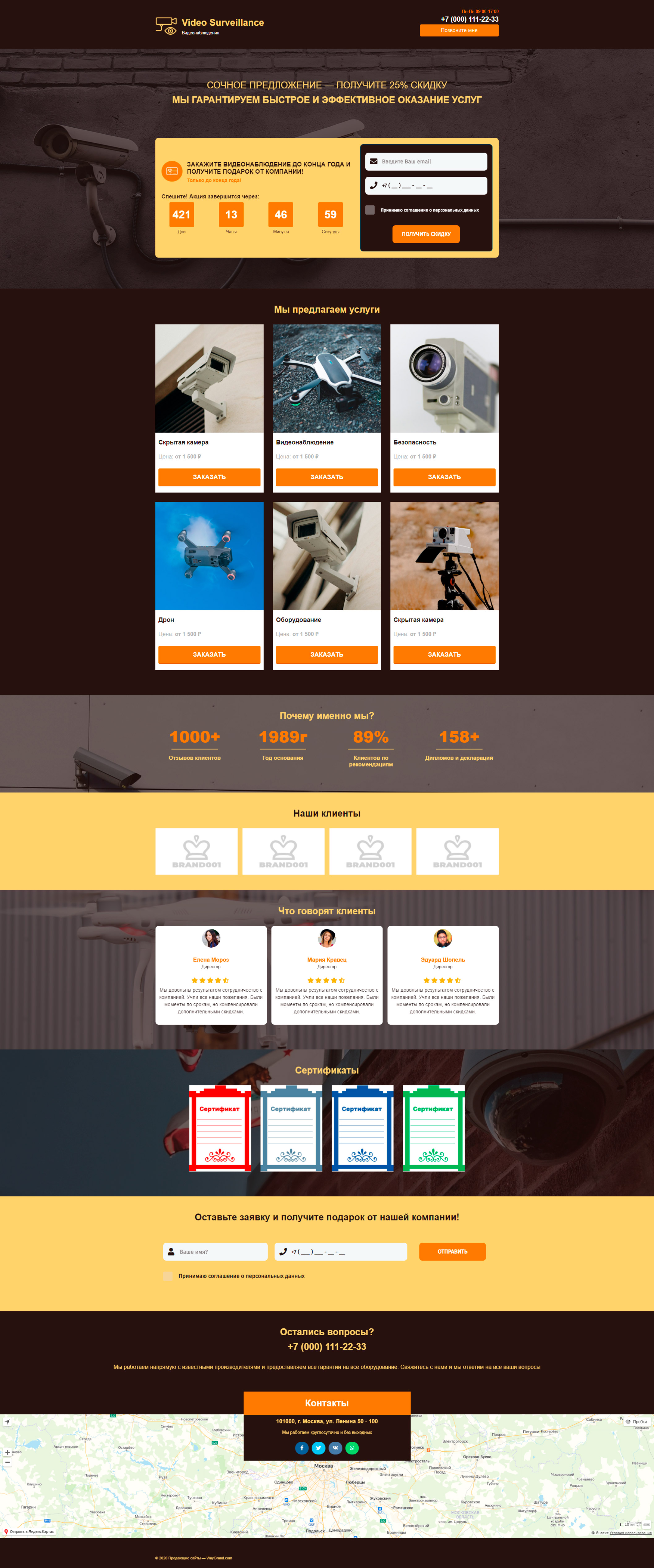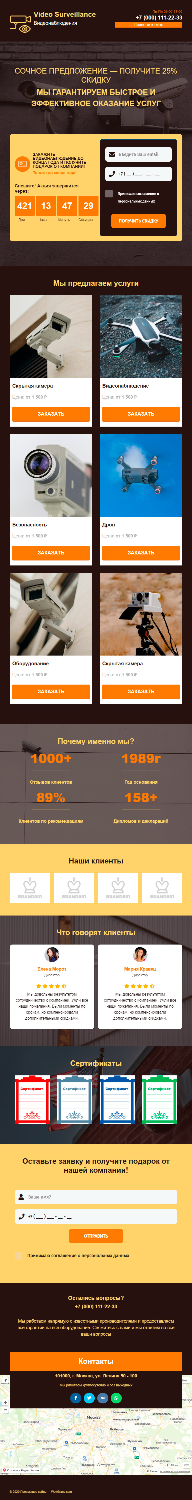 Закажите готовый продающий сайт лендинг #1609203 в Нижнем Новгороде за 1-3 дня «под ключ»: свёрстан, отрисован и готов к рекламе. Тематика шаблона «Видеонаблюдение».