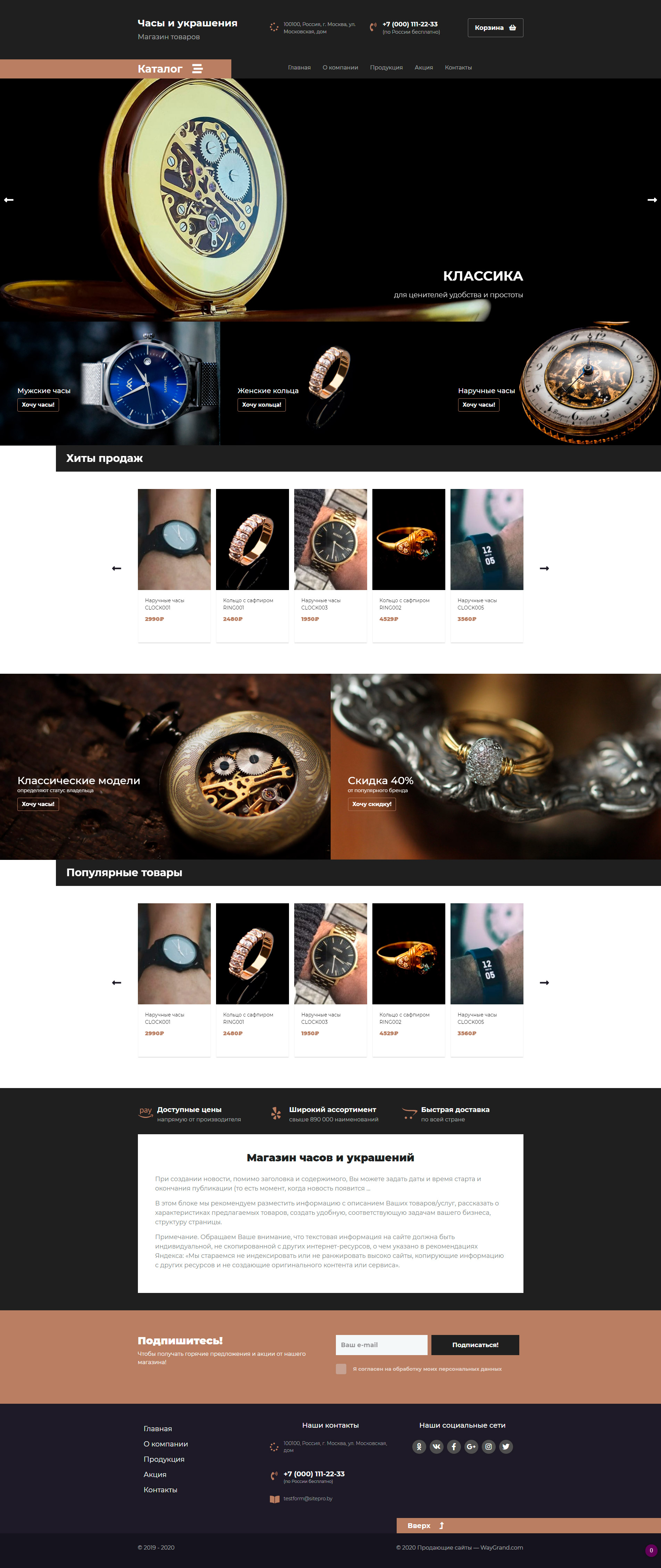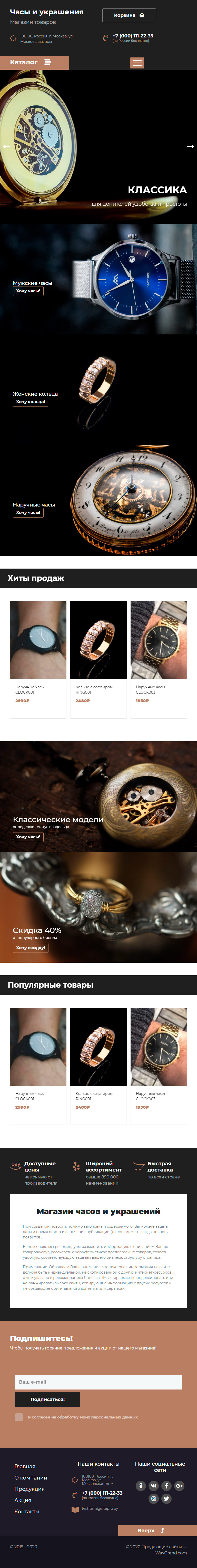 Закажите готовый продающий сайт лендинг #2437201 в Нижнем Новгороде за 1-3 дня «под ключ»: свёрстан, отрисован и готов к рекламе. Тематика шаблона «Часы и украшения».