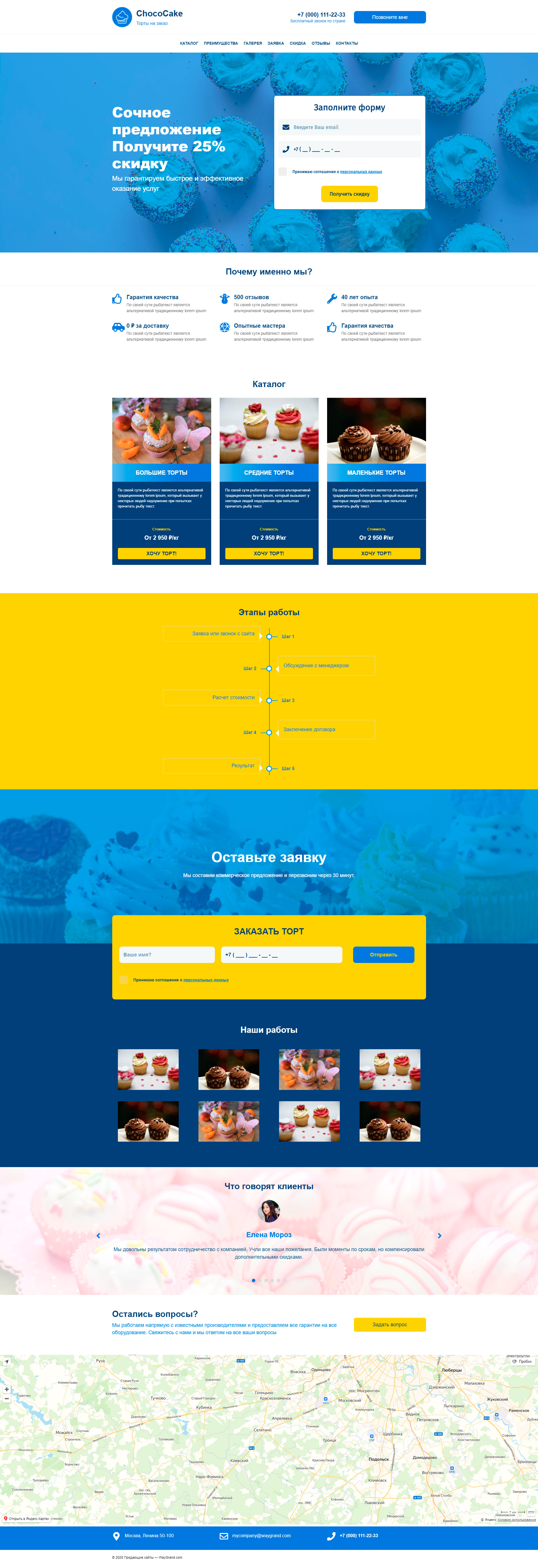 Закажите готовый продающий сайт лендинг #1711205 в Нижнем Новгороде за 1-3 дня «под ключ»: свёрстан, отрисован и готов к рекламе. Тематика шаблона «Торты на заказ».