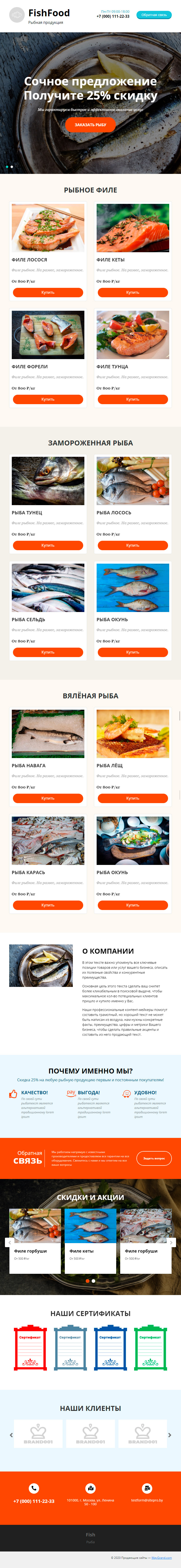Закажите готовый продающий сайт лендинг #1731201 в Нижнем Новгороде за 1-3 дня «под ключ»: свёрстан, отрисован и готов к рекламе. Тематика шаблона «Рыбная продукция».