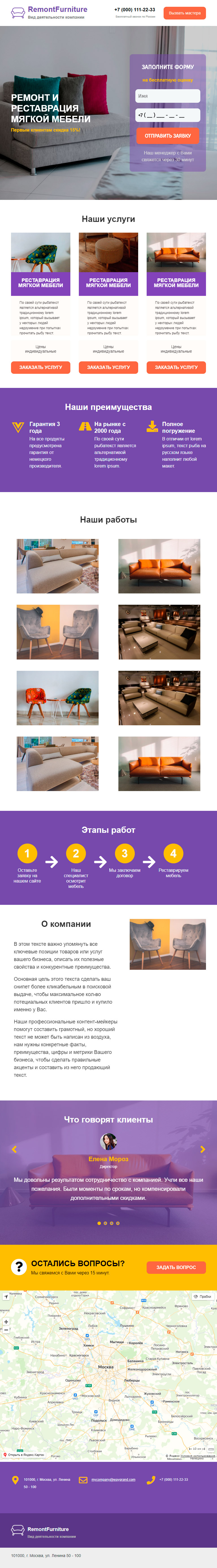 Закажите готовый продающий сайт лендинг #0924201 в Нижнем Новгороде за 1-3 дня «под ключ»: свёрстан, отрисован и готов к рекламе. Тематика шаблона «Ремонт и реставрация мебели».