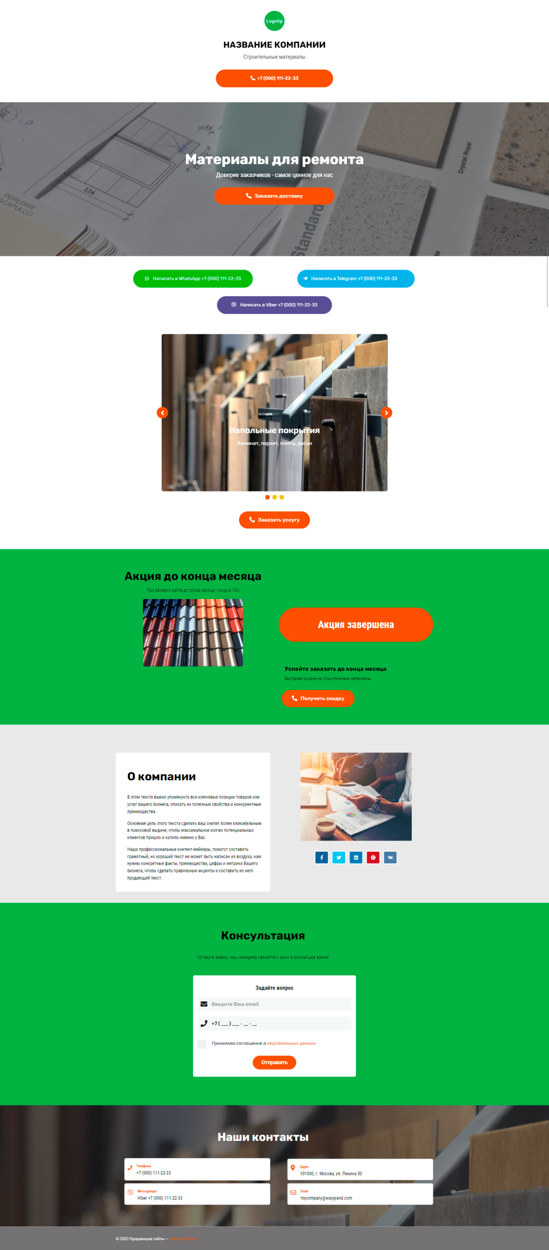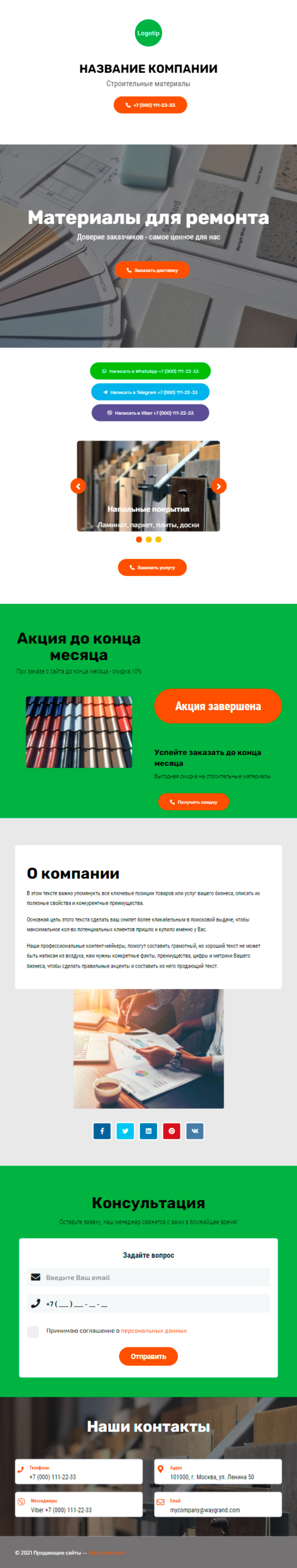 Закажите готовый продающий сайт визитка #2050101 в Нижнем Новгороде за 5-7 дня «под ключ»: свёрстан, отрисован и готов к рекламе. Тематика шаблона «Строительные материалы».