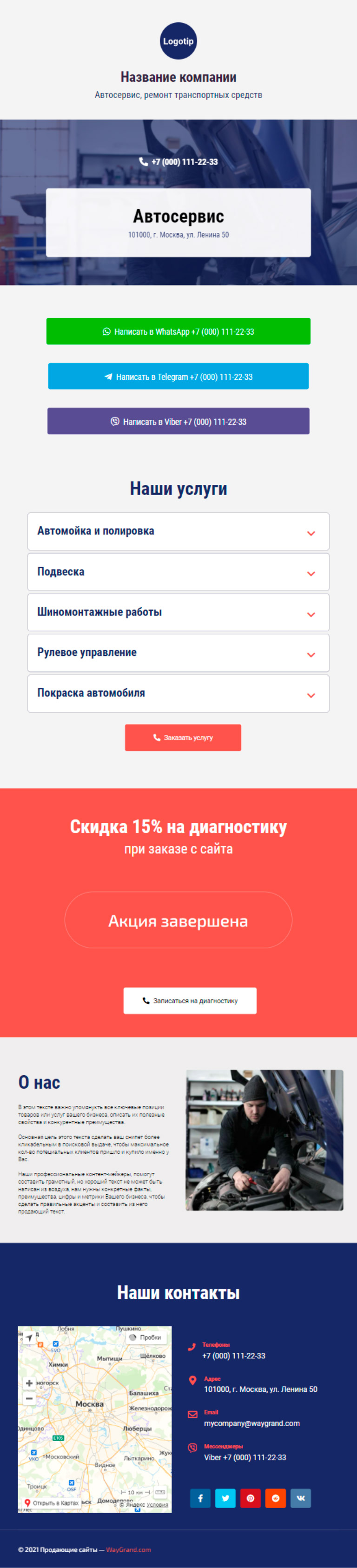 Закажите готовый продающий сайт визитка #0210101 в Нижнем Новгороде за 5-7 дня «под ключ»: свёрстан, отрисован и готов к рекламе. Тематика шаблона «Автосервис, ремонт транспортных средств».