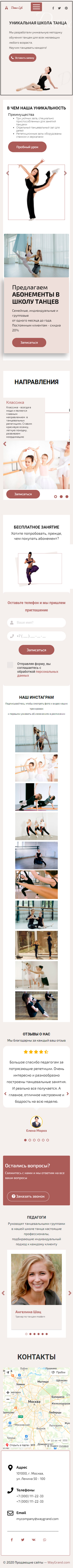 Закажите готовый продающий сайт лендинг #1923202 в Нижнем Новгороде за 1-3 дня «под ключ»: свёрстан, отрисован и готов к рекламе. Тематика шаблона «Школа танцев».