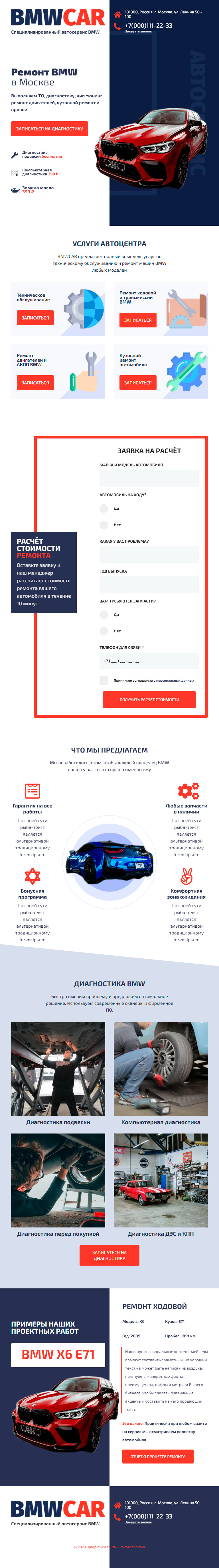 Закажите готовый продающий сайт лендинг #0210202 в Нижнем Новгороде за 1-3 дня «под ключ» по выгодным ценам на WayGrand: свёрстан, отрисован и готов к рекламе. Тематика шаблона «Ремонт BMW».