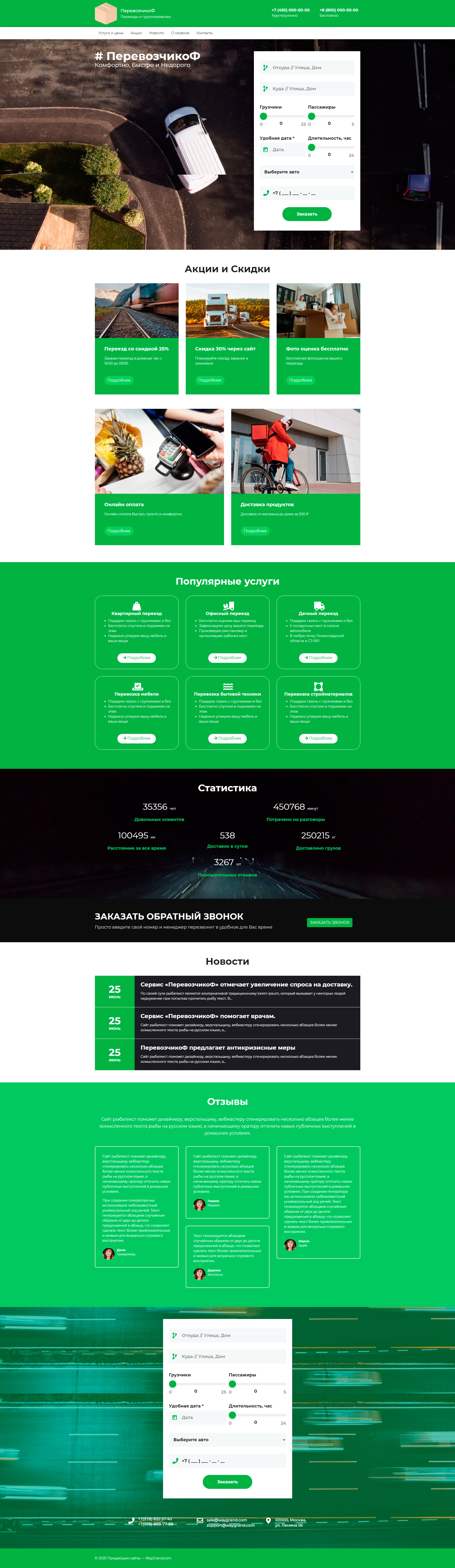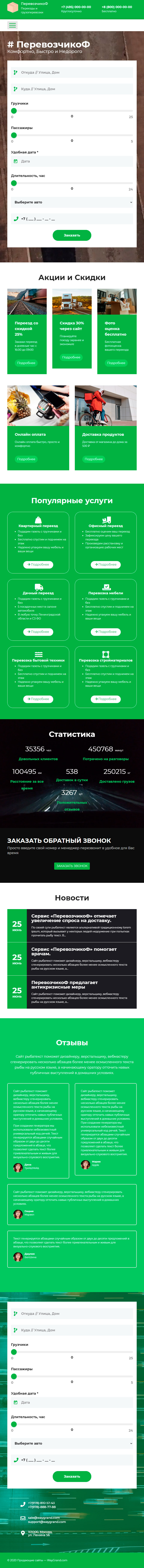Закажите готовый продающий сайт лендинг #2515201 в Нижнем Новгороде за 1-3 дня «под ключ»: свёрстан, отрисован и готов к рекламе. Тематика шаблона «Перевозчики».