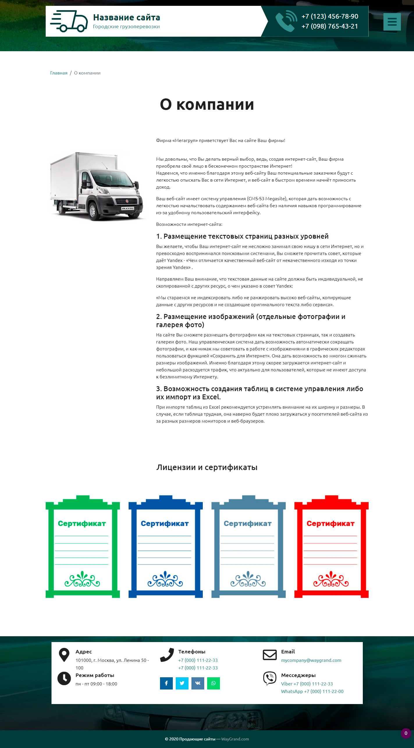 Закажите готовый продающий сайт визитка #2515302 в Нижнем Новгороде за 5-7 дня «под ключ» по доступным ценам на WayGrand: свёрстан, отрисован и готов к рекламе. Тематика шаблона «Городские грузоперевозки».