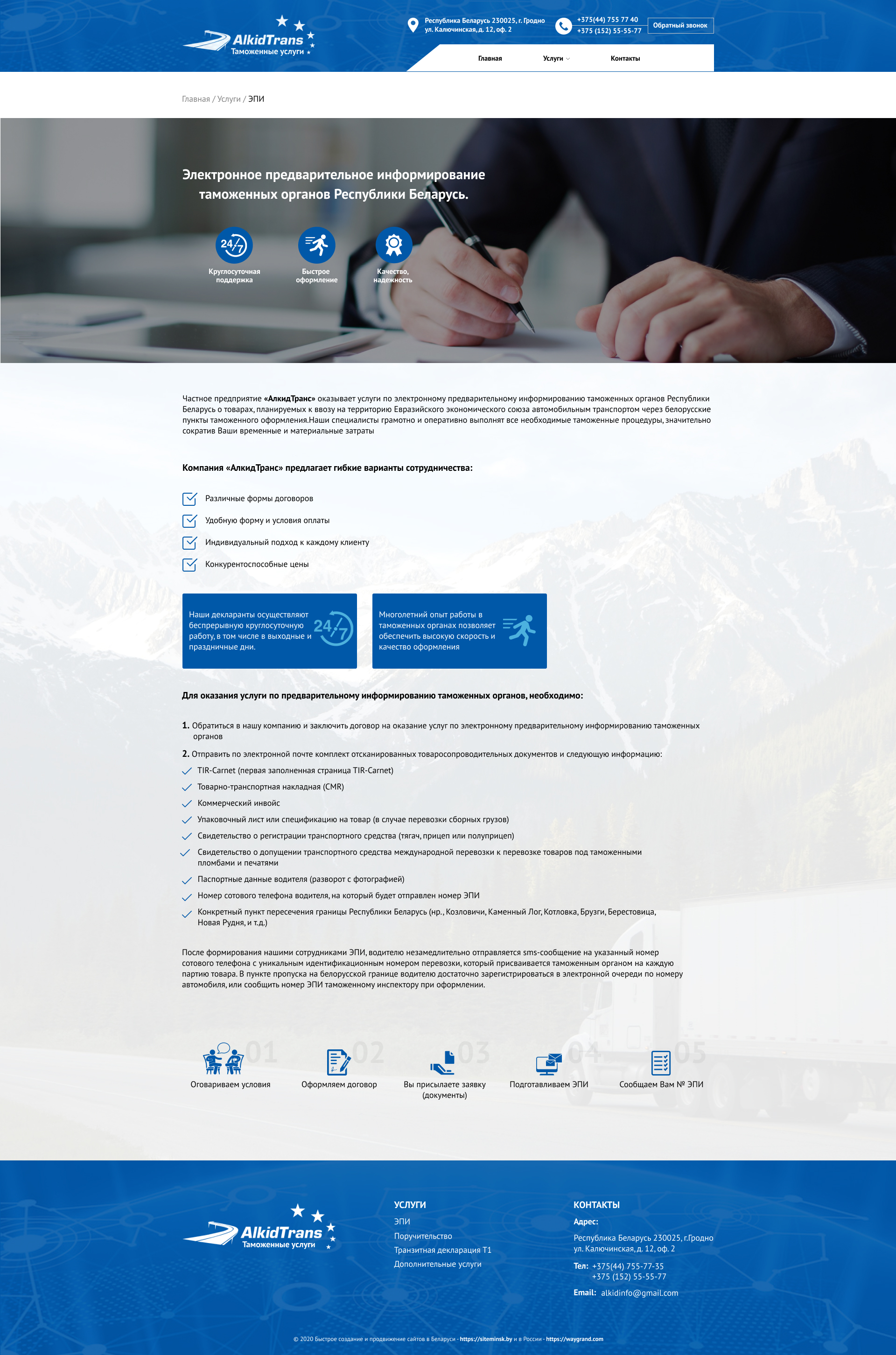 Закажите готовый продающий сайт визитка #234 в Нижнем Новгороде за 5-7 дня «под ключ»: свёрстан, отрисован и готов к рекламе. Тематика шаблона «Таможенные услуги».